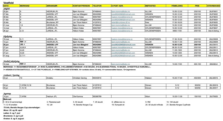 Hvert år arrangerer Andebu JFF både åpne stevner og klubbmesterskap i forskjellige skytegrener.