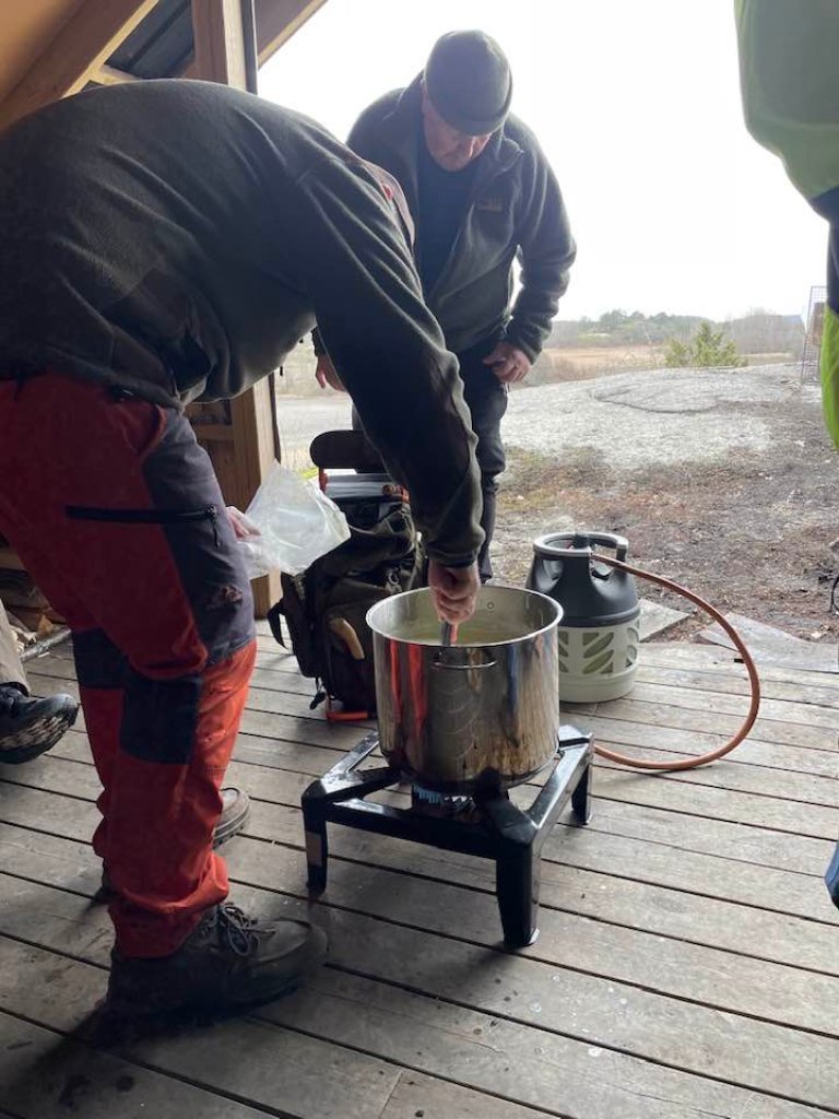 Og så var det råvarene. Nydelig fisk av ulike slag. Brosme, flyndre, kveite, torsk og sei. Bjørn Gramm hadde slått på stortromma og forært seniorene nydelig fisk fra vestlandet. I Syvde har Bjørn og jaktlaget hans kjøpt et nydelig sted. Der jakter og fisker de.