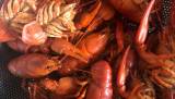 Vi setter ut agn festet på pinner, før det blir for mørkt, og henter opp krepsen så langt ut på natta som vi orker.