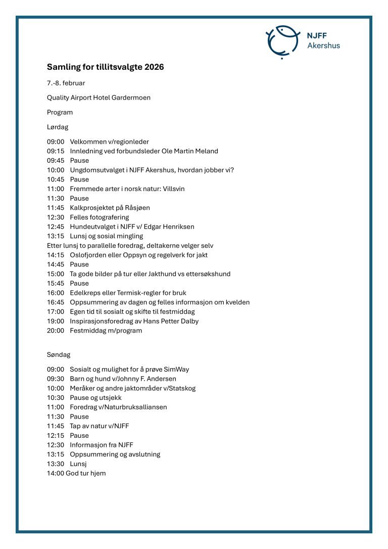 NJFF Akershus har gleden av å ønske velkommen til samling for tillitsvalgte 2026.