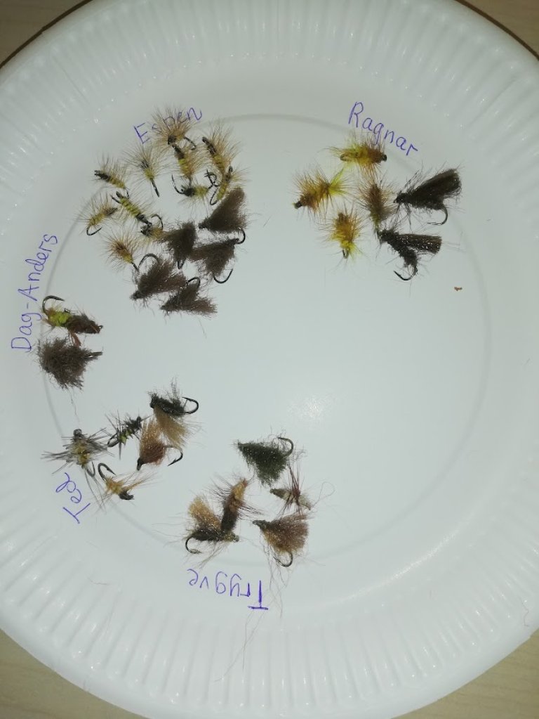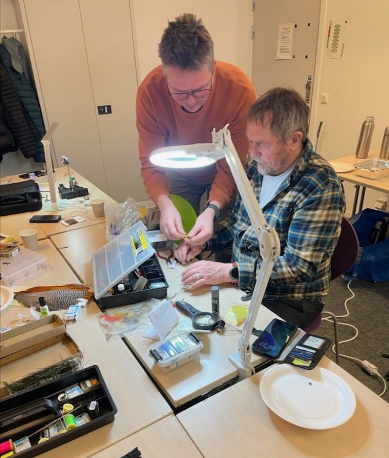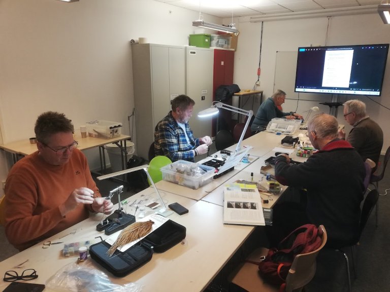 Derfor ble den andre kvelden benyttet til å binde Ørretfluer. De som ble valgt var «Rakkelhanen» og «Superpuppan». Det ble jo selvfølgelig også anledning til gode fiskehistorier og litt servering. Trygve var som vanlig en glimrende instruktør. Da ønsker vi bare «Skitt fiske» for 2026-sesongen.