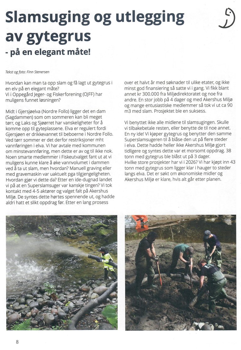 Det var ca 120 deltakere på konferansen, og leder av Fiskeutvalget i OJFF holdt et foredrag om blant annet om våre slamsuging- og gytegrusprosjekter i Gjersjøelva. Det ble veldig godt mottatt, og leder av Akershus JFF ba oss lage en artikkel til «NJFF Akershus INFO» om prosjektene etterpå, noe vi syntes var hyggelig.