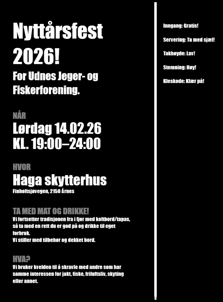 Vi gleder oss masse til å få invitere alle medlemmer av Udnes JFF, til nyttårsfest🤩