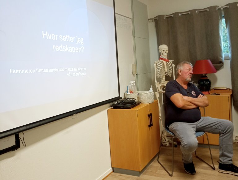 Tor Einar Lien gikk gjennom hummerens historie, fangstrapporter med gamle teiner og oppsettet så alt blir riktig i forhold til regler. Lien viste også hvordan man bruker kart og tips til plassering.