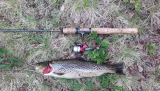 Fin ørretstamme. Vannet ble rotenonbehandlet og åpnet for fiske på 50-tallet. Fiskekortkasse ved vannet.