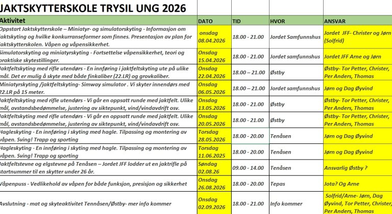 Jaktskytterskolen vil foregå i perioden 8. april - 2. september 2026.