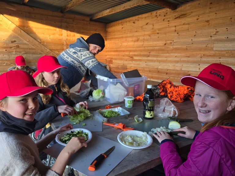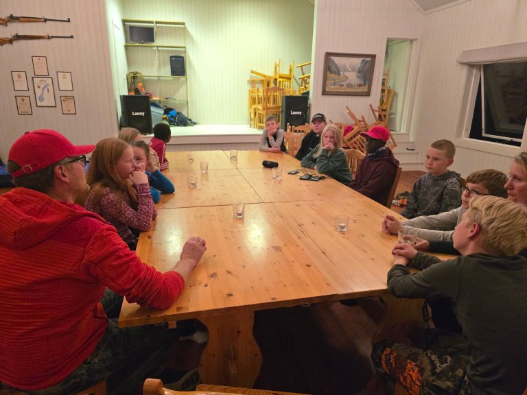 11 barn møtte opp fredag ettermiddag og vi startet med skyting på banen, taco med elgkjøtt og planlegging av jakta for dagen etter. Kvelden bød også på mye latter og bevegelse – vi danset TL-dansen etter instruksjon fra en av ungene, løp om kapp og nøt en nydelig høstkveld ute under stjernene!