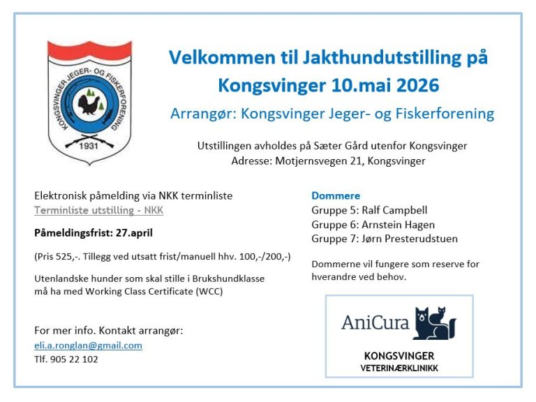 Velkommen til Jakthundutstilling 10 Mai.