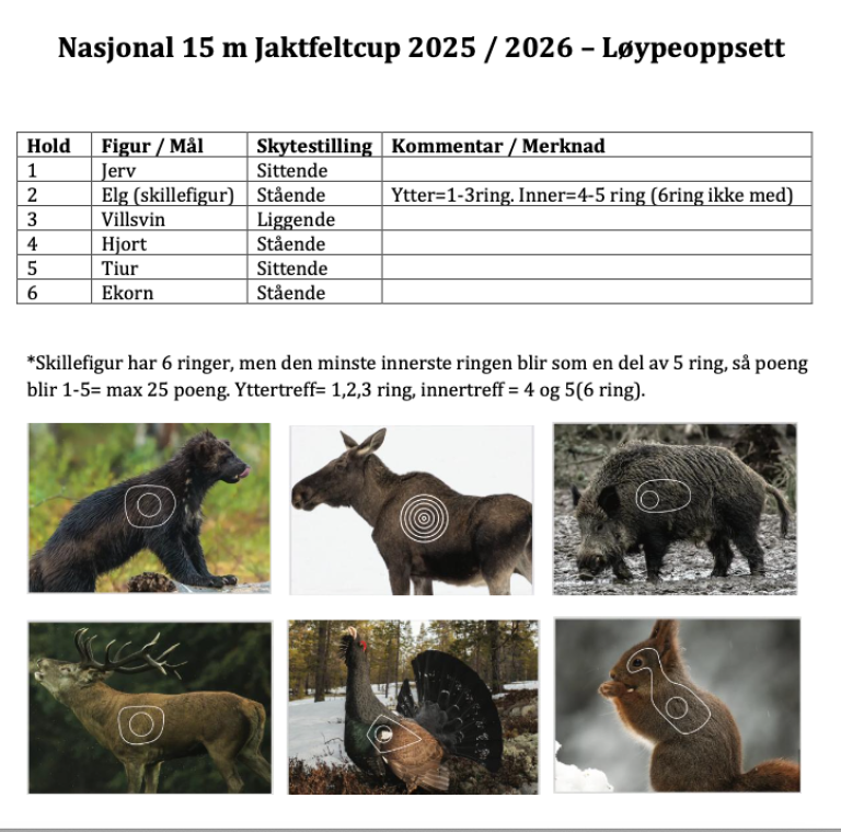 Jordet og Tenaasen skytterlag, Trysil JFF og Jordet JFF har fått tildelt rolle som en av arrangørene for Nasjonal 15m Jaktfeltcup 2025/2026.
