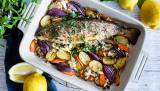 Bakt ørret fylt med sitron og urtesmør smaker nydelig sammen med grønnsaker som rødløk, gulrøtter og blomkål. Dette er en alt-i-ett-form til travle dager da man har lyst på noe ekstra godt til middag.