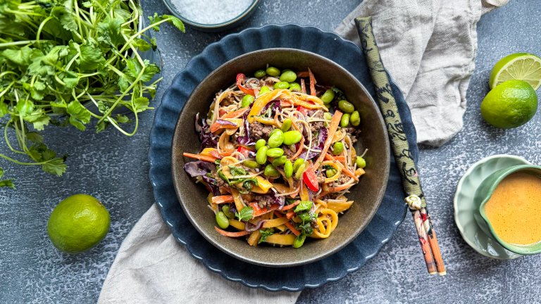 Vill thaisalat er en nydelig middagsrett. Denne thai-inspirerte salaten kombinerer smakfullt hjortekjøtt med sprø grønnsaker, lime og chili — en perfekt balanse mellom syrlig, salt og lett krydret.