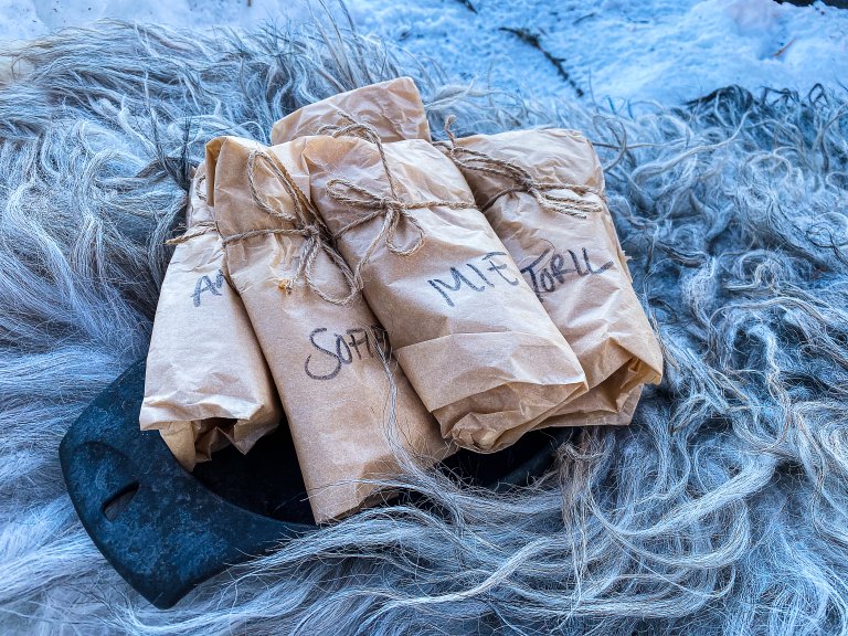 Ha sprøstekt fisk, salat, agurk, tomat, løk og aioli på hver tortillalefse, fold lefsene sammen, pakk dem inn i matpapir eller folie, pakk sekken og nyt turen.