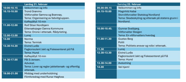 21-22. februar arrangerer Norges Jeger- Og Fiskerforbund- Nordland Ettersøksseminar i Mo i Rana.