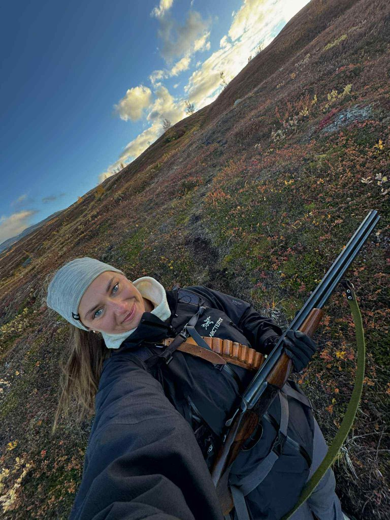 Mitt navn er Ine Marie Ravn Andersen, jeg er 28 år og kommer fra Mo i Rana. Jeg jobber som lærer på Polarsirkelen Videregående Skole. På fritiden er jeg glad i å være i fysisk aktivitet og drive med ulike typer friluftsliv og jakt. Jeg bor sammen med samboeren min Øyvind, og vi har engelsk setteren Pippi Lotta. Jeg går både på rypejakt og elgjakt, og synes dette er veldig spennende og artig.