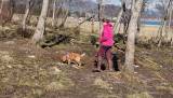 Ta med hund, sporsele, langline og godbiter og vann til hunden.