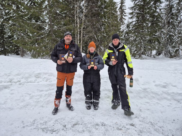 Det ble en tung dag på isen for de påmeldte isfiskerne denne søndagen. Til tross for mye snø og veldig mye overvann ble det totalt pilket opp over 35 kilo abbor, og det ble delt ut premier og plaketter til de beste isfiskerne denne dagen.