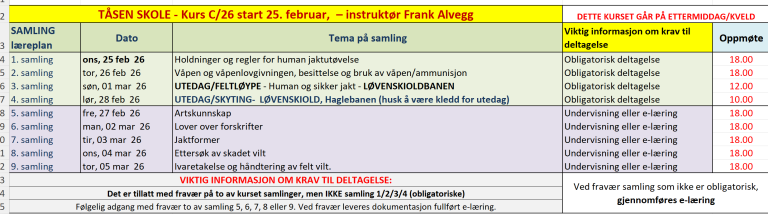 Vi starter jegerprøvekurs 25 februar kl 18.00 på Tåsen skole. Dette kurset følger den poulære læreplanen over ni samlinger, med mulighet for noe e-læring.
