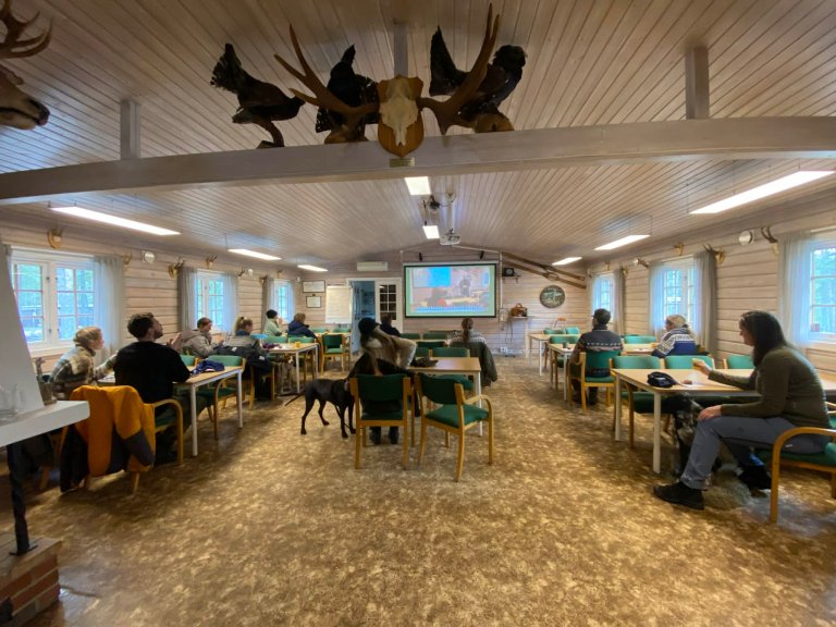 Kurset startet med en teorikveld hvor temaet var hundens instinkter, hvordan hunder lærer sosialt, og hvordan tydelige rammer og god kontakt mellom hund og fører kan gjøre samarbeidet enklere – både i hverdagen og under jakt. Mange opplever at samarbeidet med hunden blir lettere når vi i større grad jobber med hundens naturlige instinkter og kommunikasjon, i stedet for å forsøke å styre alt gjennom kommandoer.