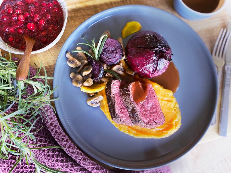 Vi roter litt rundt i fryseboksene og ser hva vi kan trylle frem fra høstens jakt- og fiskesesong og får dette på bordet.