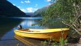 Lagsbåten ligger på Bjørke i Hjørundfjorden og vi har ein småbåt med motor ved Oldevatnet