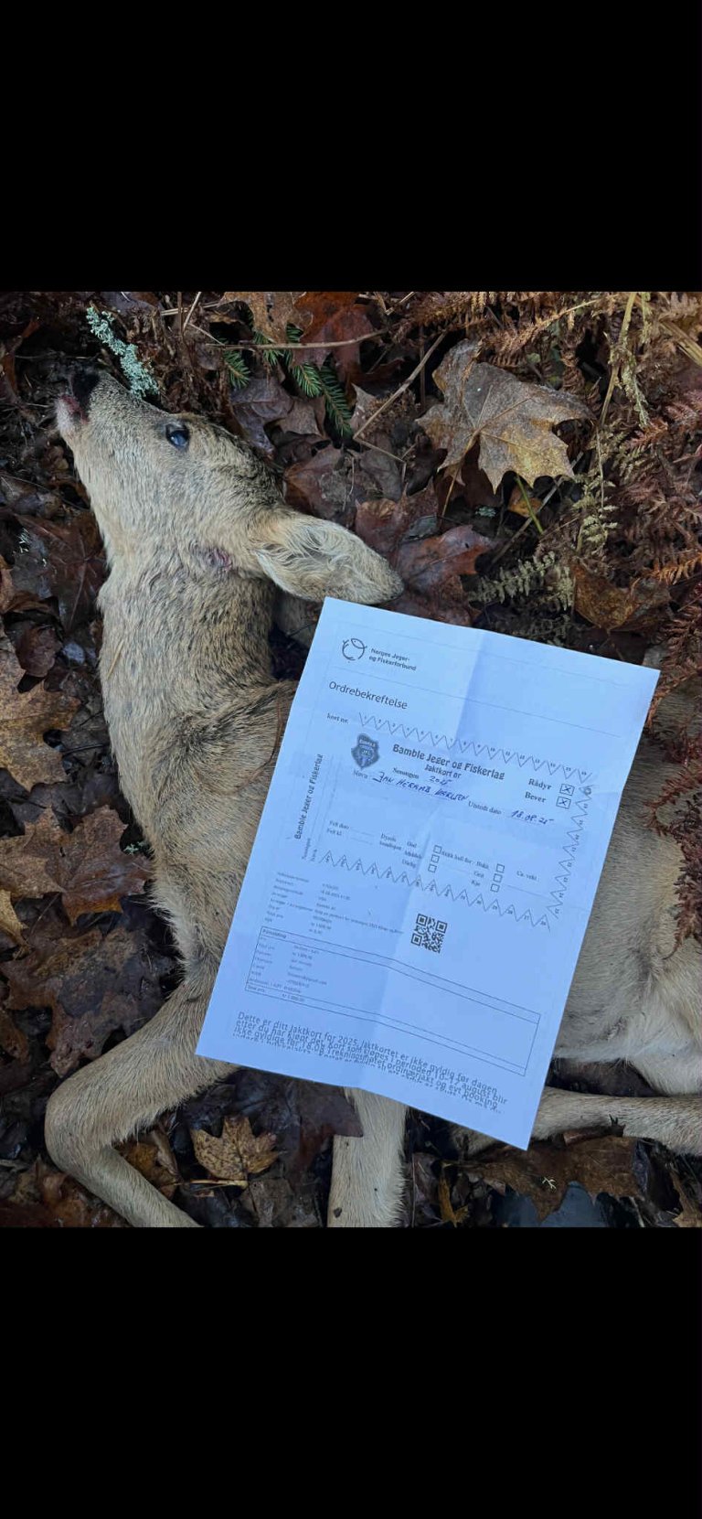 I dag var det en av våre ferskeste jegere som sto for fellinga. En flott bukk falt for Sondre, som er førsteårs jeger. Han tok jegerprøven hos oss i Bamble i januar, og deltok på introjakt sist onsdag. Kanskje fikk han med seg noen nyttige tips derfra. Gratulerer med første bukken, Sondre!