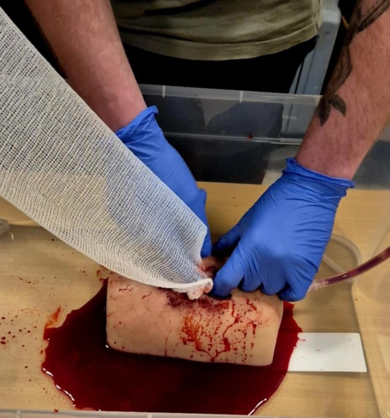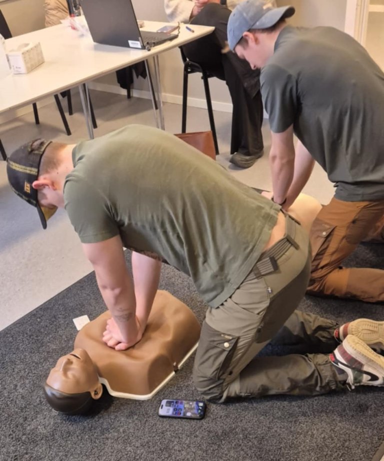 Etter omtrent én time med teori fikk deltakerne prøve seg i praksis. Ungdommene trente på HLR (hjerte-lungeredning), sideleie, spjelking av brudd og behandling av dype kutt med kraftig blødning. Den praktiske delen gjorde innholdet både realistisk og lett å huske.