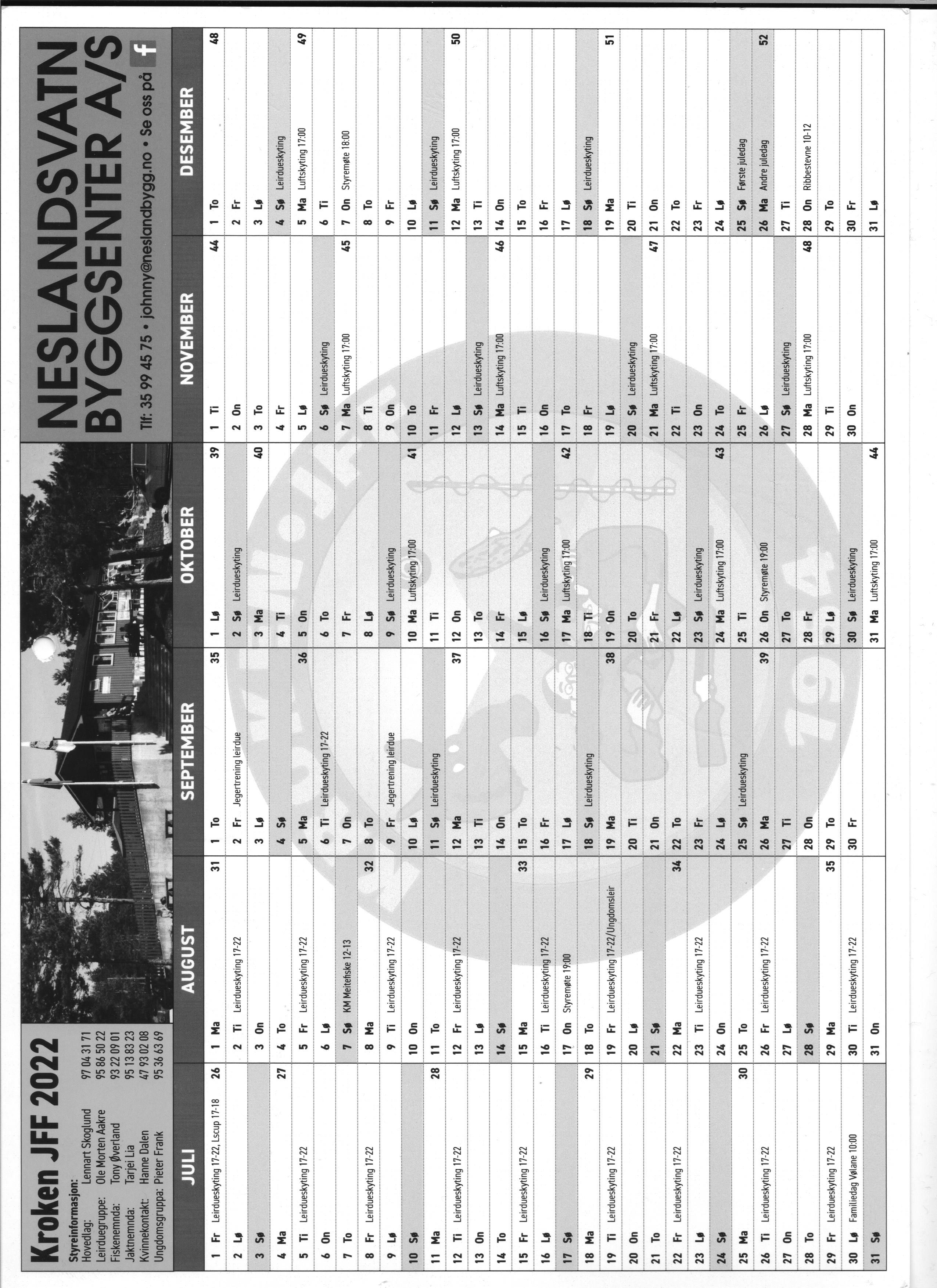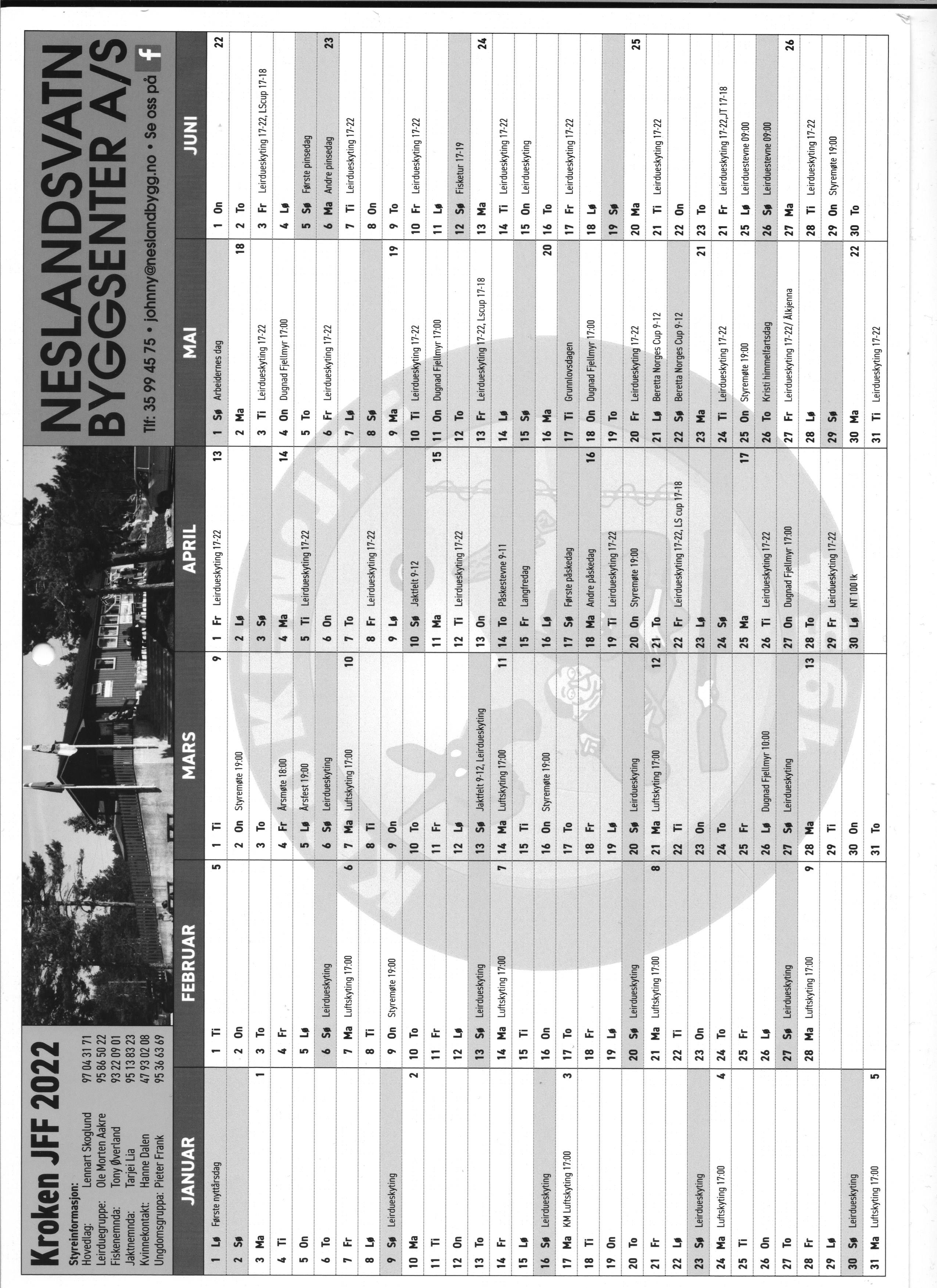 Her er Kroken JFF's kalender for året 2022. Trykk på linkene under.